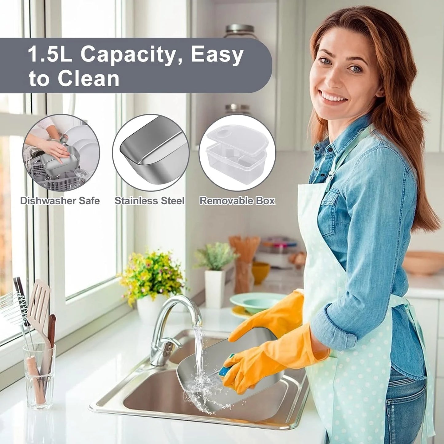 - Safe Material & Easy To Clean --- Portable heated lunchbox made of premium PP plastic and 304 stainless steel, which is safe and durable. Contains a 1.5L removable stainless steel container and a 0.45L plastic box for storage, they are dishwasher safe. Warm Tips: No cleaning the heating base with water, No add water to the heating base to avoid short circuits.